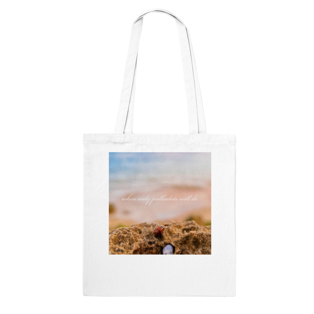 More than just a cute bag featuring an image of a ladybug at the beach, carry with you the sensations of health, wellbeing and warmth through the accompanying short story on the Marlon Quinn blog at: